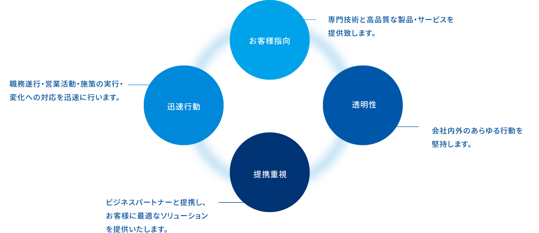 当社は時代の経営環境、技術、人、経済の変化に適切かつ素早く対応し、